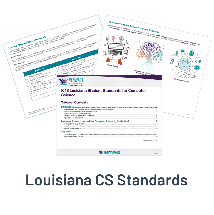 After statewide collaboration with educators, school leaders, industry partners, and parents, the Louisiana Department of Education (LDOE) completed the first K–12 Louisiana Student Standards for Computer Science in 2024. These standards ensure that every student, from kindergarten through high school, gains digital literacy skills, problem-solving abilities, and equitable access to computer science education.